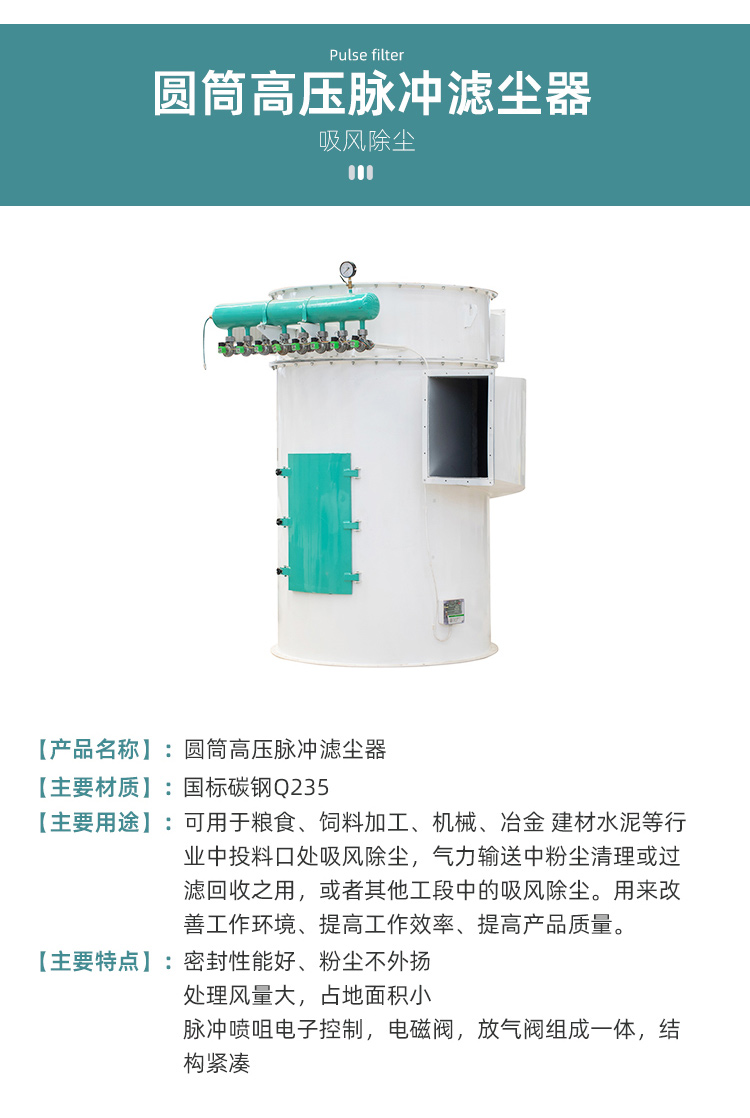 可用于糧食、飼料加工、機械、冶金建材水泥等行業(yè)中投料扣處吸風(fēng)除塵,氣力輸送中粉塵清理或過濾回收之用,或者其他工段中的奇峰除塵。用來改善工作環(huán)境、提高工作效率、提高產(chǎn)品質(zhì)量。